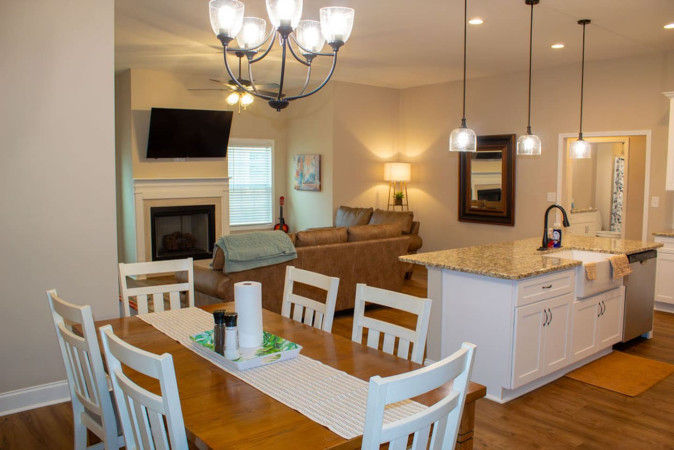 Warner Robins Georgia Vacation Rental. Enjoy a 3 Bedroom, 2 Bath spacious and modern Georgia home (sleeps 8) with a bright living area and a fully equipped kitchen featuring granite counters and stainless steel appliances. The primary suite includes a spa-style bath and walk-in closet, while the home also offers access to a pool, fitness center, and clubhouse, plus driveway and garage parking.